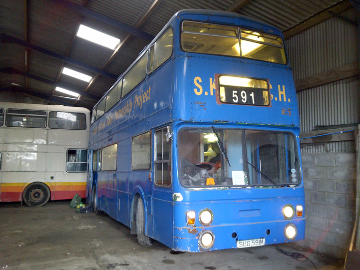 December 2011 saw our Christmas working party take place, during which various components for 591 and other buses were sorted out, the interior of 591 was swept clean. We are pleased to announce that we have enough metal seatframes for both decks, and enough green leatherette seat bases for the upper deck. What we do need however (and probably will never be able to get without resorting to new manufacture) are seat backs (with dark wood-effect rear and green vinyl) for the upper deck, and both seat backs and seat bases for the lower deck (with the same dark wood effect rear but green and red moquette.