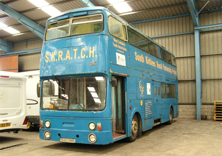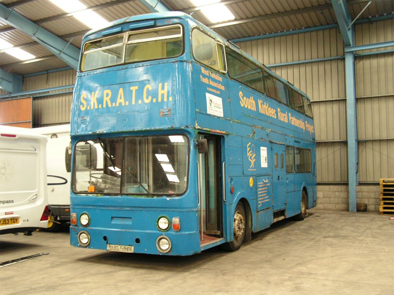 It then passed to West Yorkshire Youth Association, who first liveried it in brown, red, green and yellow (with a brick effect on the front) and then an allover blue.